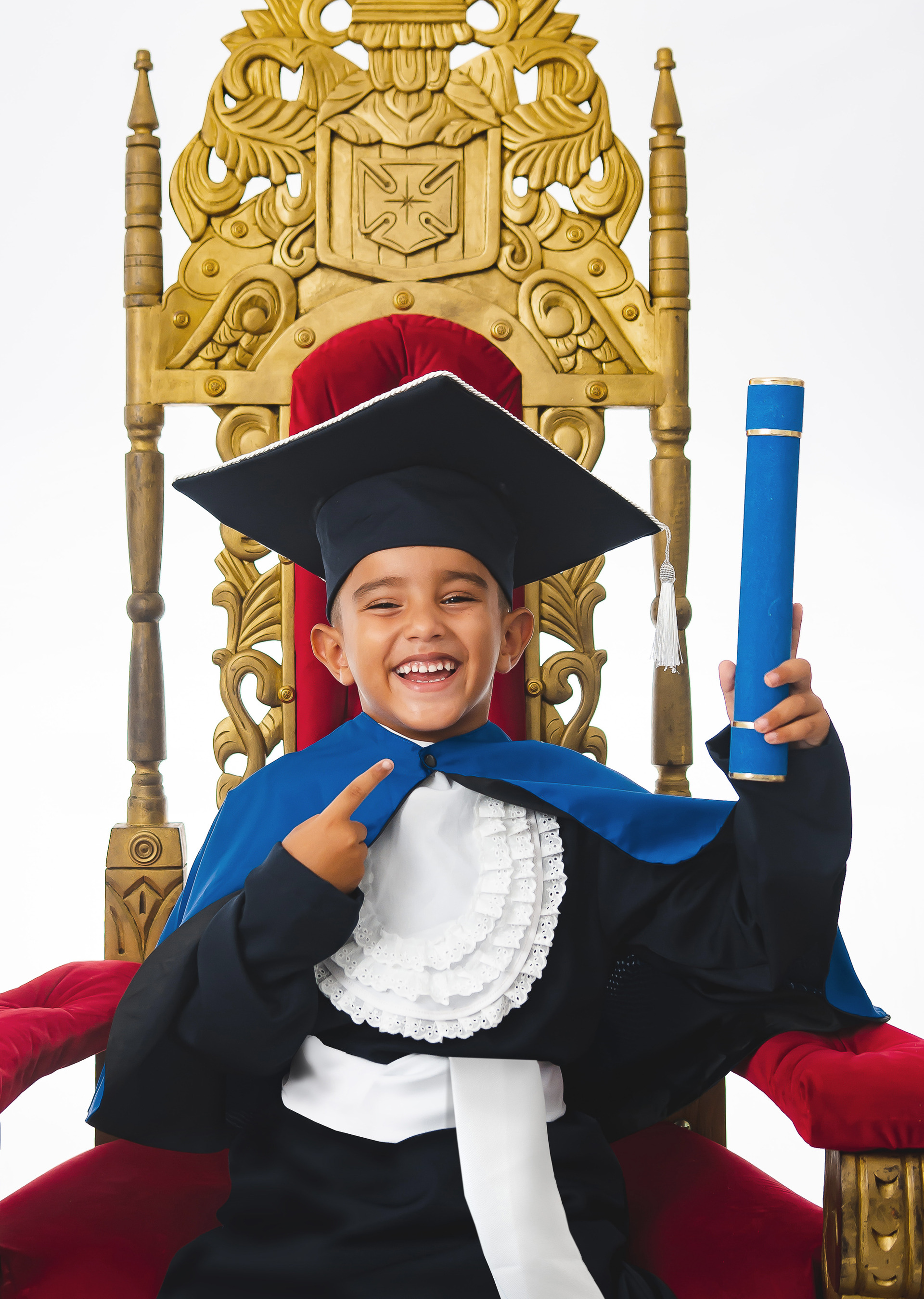 Trabalhamos com a cobertura fotográfica das sessões que antecedem a formatura. Temos toda a estrutura de iluminação profissional de estúdio, cadeira premium e becas de todas as cores para garantir a qualidade máxima na execução do serviço de fotografia.